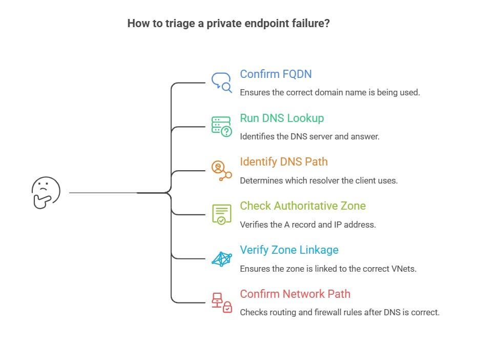 When someone pings you with “private endpoint is broken,” run this quick loop before anyone starts changing things: