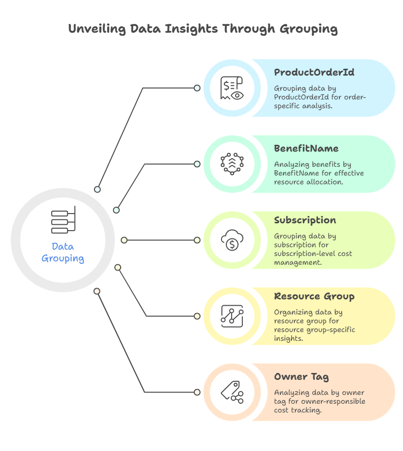 Top offenders | Group by ProductOrderId, BenefitName, subscription, resource group, or owner tag |